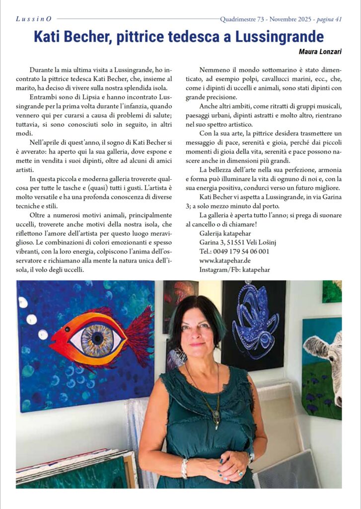 Bei meinem letzten Besuch auf Veli Lošinj lernte ich die deutsche Malerin Kati Becher kennen, die sich zusammen mit ihrem Mann entschieden hat, auf unserer wunderschönen Insel zu leben.